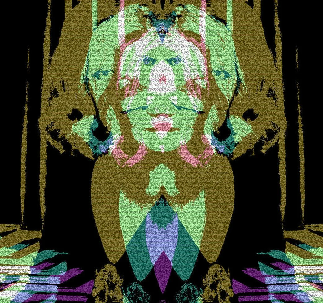 Videotapes. Here she is, the pageant queen, lips made bright red and cheeks rouged. She wears red white and blue while singing I’m a yankee doodle dandy. Here she pantomimes riding a horse, waving her hat, triumphantly. Her attire, spangles shimmering, feathered boas twirling. Other performances, costumes, her many gowns, heels. Her multitude of hats, bucket hats, red, white, and blue festooned with ribbons, black and white polka dot cloche, a red beret, a glittering silver cowboy hat. She knows when to touch her hand to the brim, remove it, twirl it, wave it. Her smile, her winks. Her movements, a child’s attempts at dance, various steps, kicks.